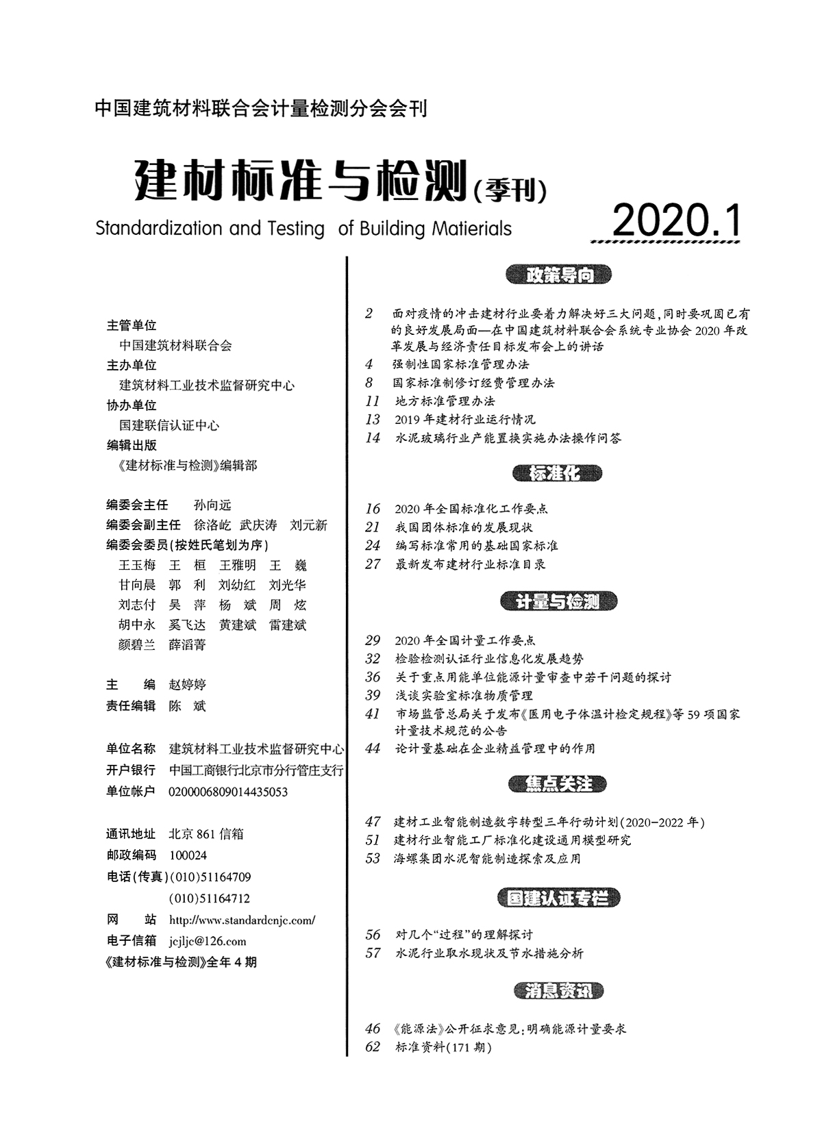 《建材標(biāo)準(zhǔn)與檢測》2020年第一期