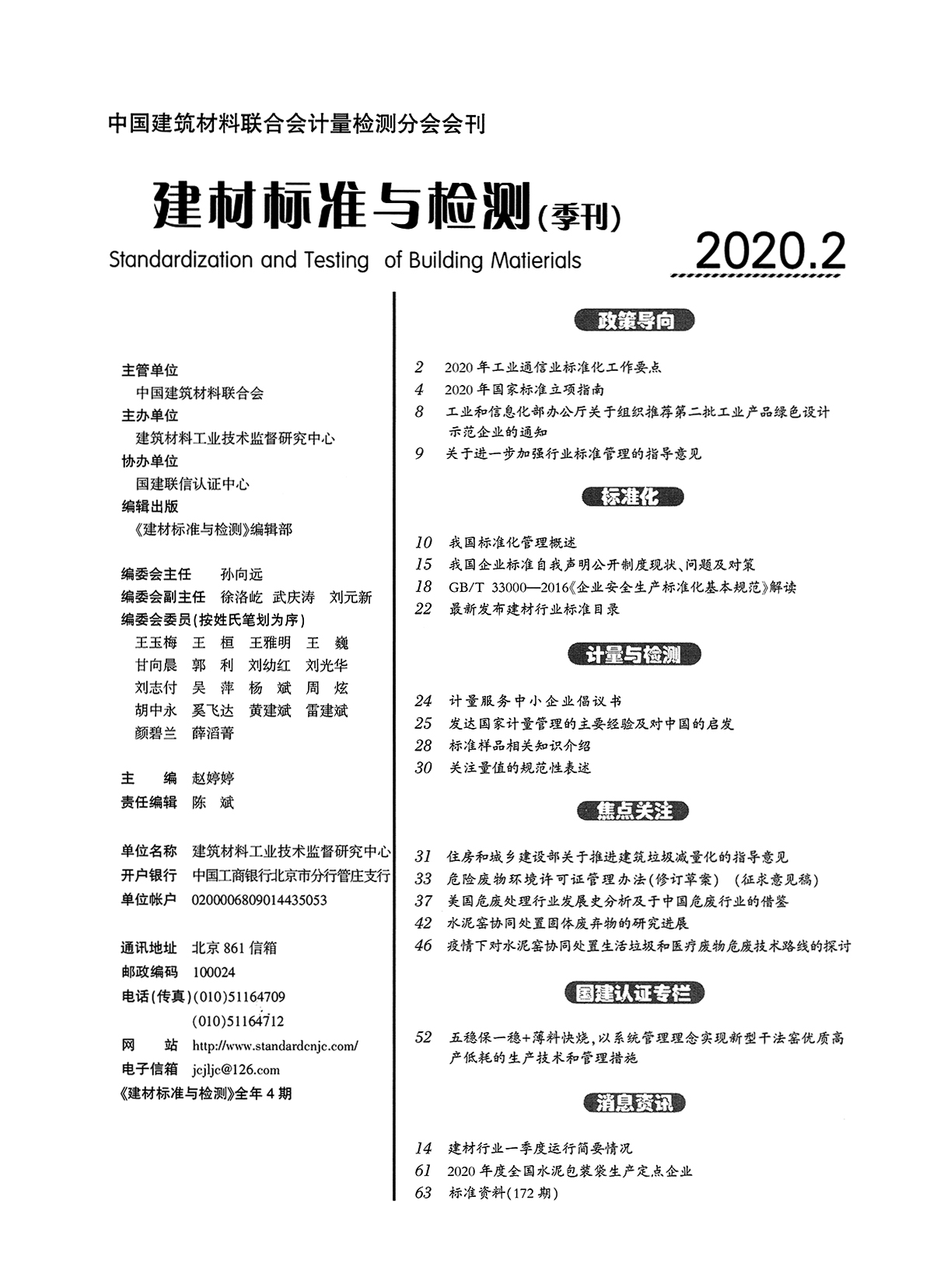 《建材標(biāo)準(zhǔn)與檢測(cè)》2020年第二期
