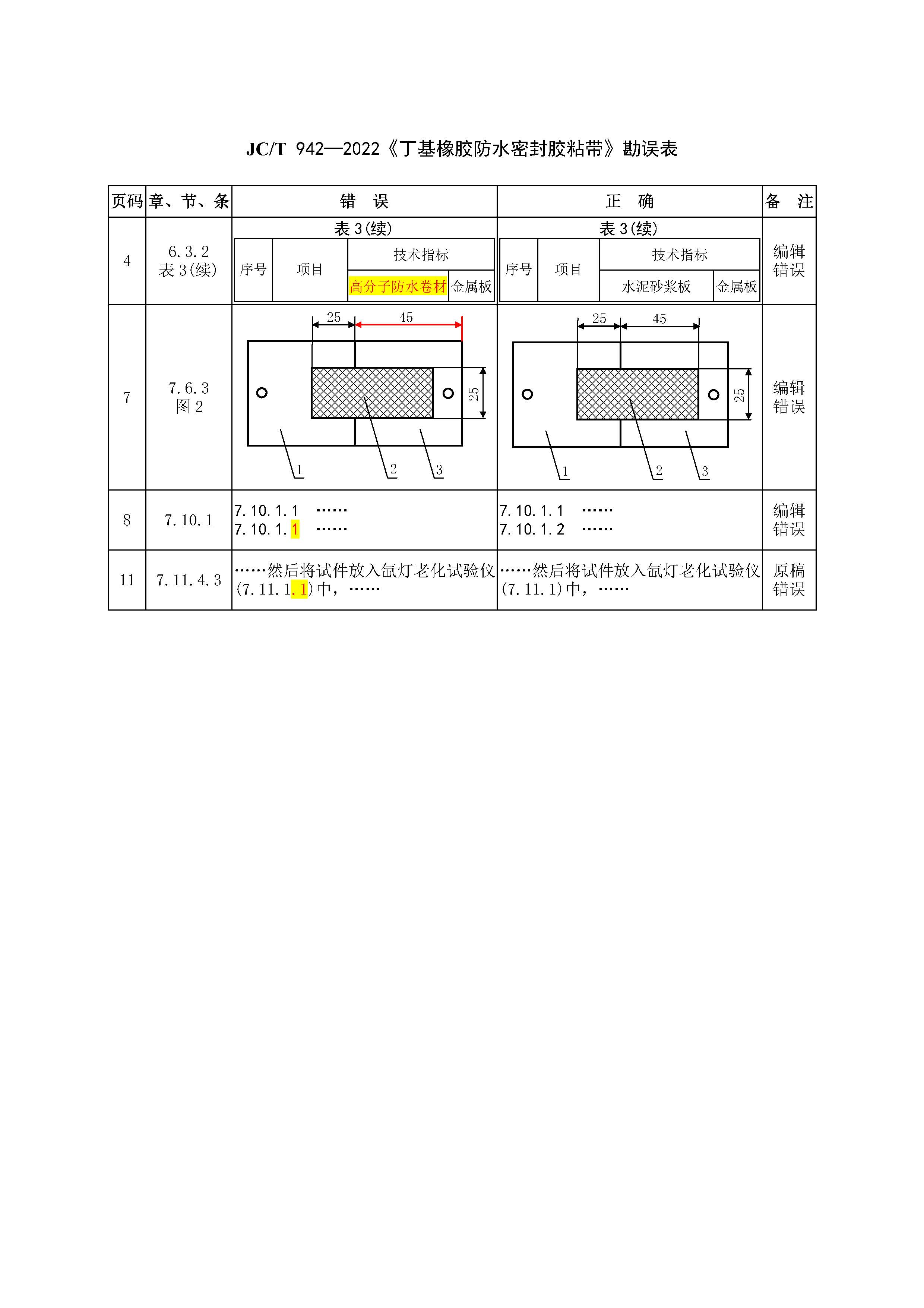 JC/T 942-2022《丁基橡膠防水密封膠粘帶》勘誤表
